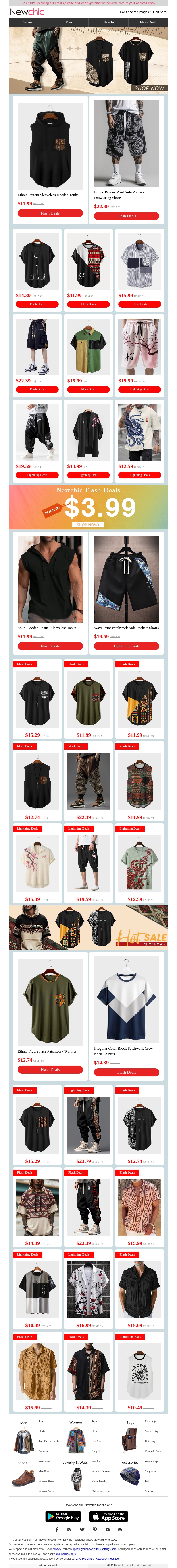 Newchic presenteert een gevarieerde collectie van modieuze kledingstukken. Van etnische patronen tot moderne stijlen, ontdek alles in de nieuwste Flash Deals en exclusieve aanbiedingen. Mis de kans niet om jouw garderobe te verfrissen met deze unieke stukken.