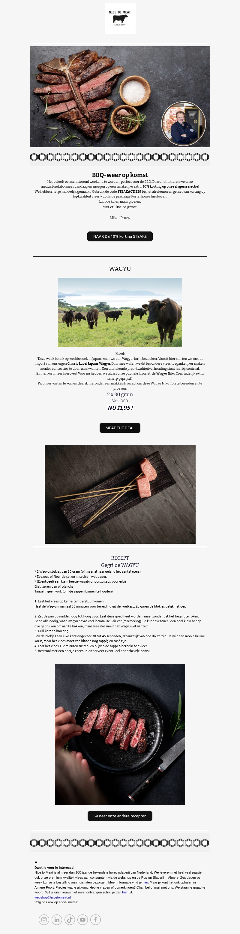 10% extra STEAK korting en nieuws uit Japan.