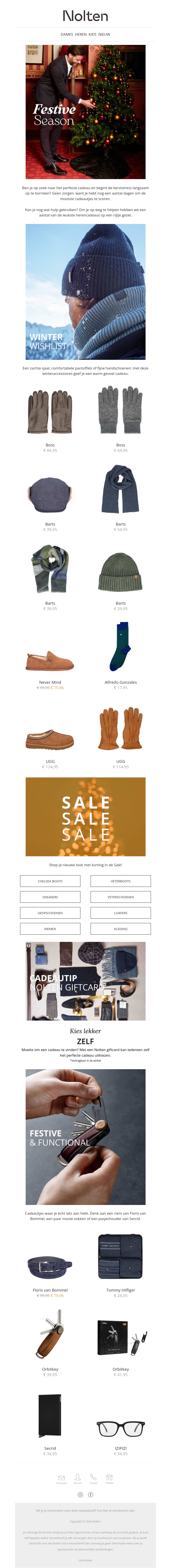Deze nieuwsbrief biedt een prachtige selectie van decembergeschenken voor mannen. Van stijlvolle accessoires tot warme winterkleding, ontdek de perfecte items om te geven. Mis de speciale aanbiedingen niet en beleef een feestelijke tijd met onze topkeuzes!