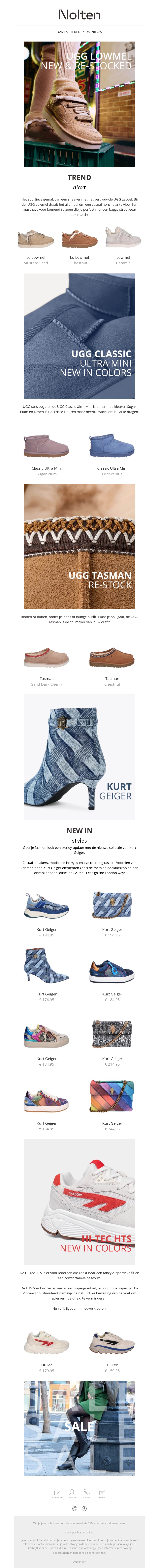 Verken de nieuwste collecties van UGG met de trendy Lowmel en Tasman stijlen. Perfect voor een stijlvolle look. Ontdek ook de frisse kleuren van de UGG Classic Ultra Mini. Shop nu de nieuwste items van Kurt Geiger en de kleurrijke Hi-Tec sneakers. Bekijk de geweldige sale deals en update uw garderobe.