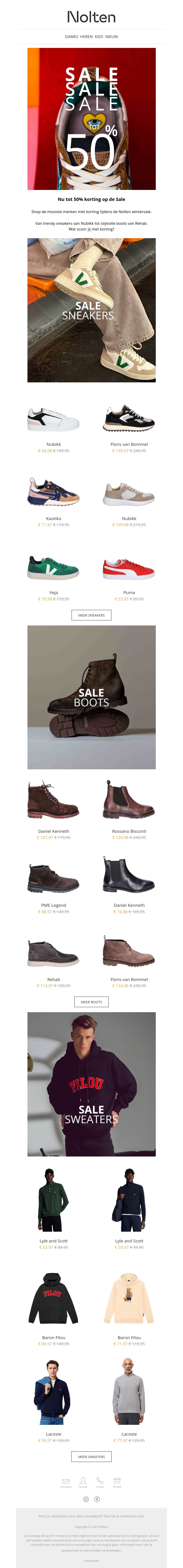 Mis het niet! Profiteer van tot wel 50% korting op een ruime selectie boots en sneakers. Van casual tot chic, er is voor ieder wat wils. Perfect voor uw dagelijkse look of voor een speciale gelegenheid. Shop snel bij Nolten en vernieuw uw collectie met stijl. Kwaliteitsschoenen voor een vriendelijke prijs.