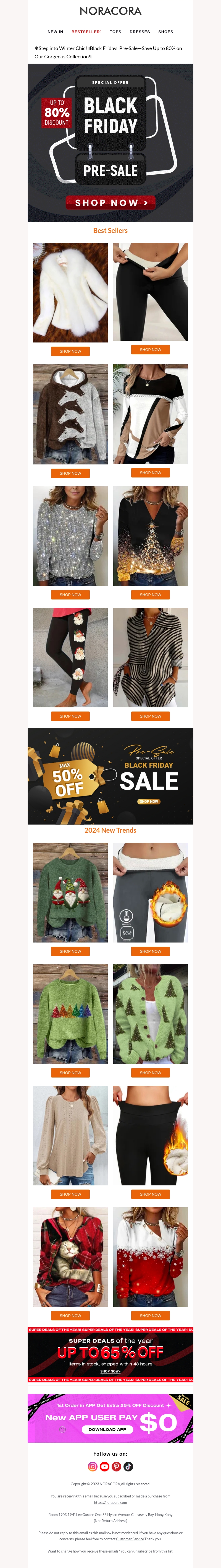 Duik in de vroege Black Friday aanbiedingen bij Noracora met ongelooflijke kortingen tot wel 80%. Van trendy winterjassen tot sprankelende truien en broeken met unieke prints, er is voor ieder wat wils. Blijf stijlvol en bespaar terwijl je winkelt in de beste verkoop van het jaar. Ontdek ook de nieuwste trends voor 2024. Mis het niet en shop nu.