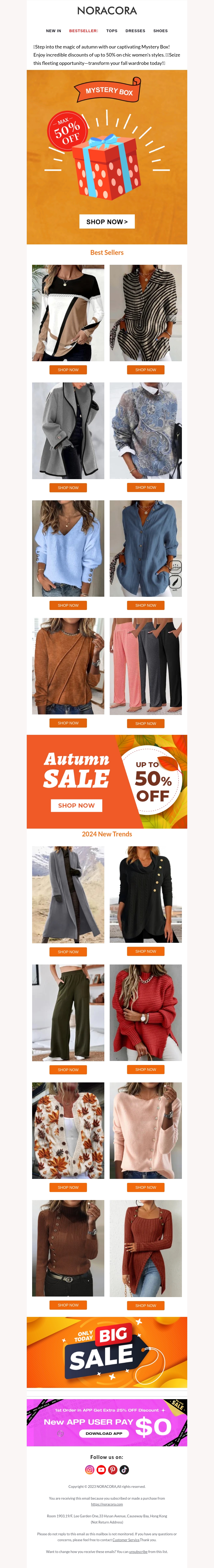 Verken de nieuwste herfstmode met Noracora's selectie van essentiΓ«le kledingstukken. Mis de kans niet om te profiteren van kortingen tot 50%. Kijk naar de bestsellers voor inspiratie en vernieuw je look met 2024 trends. Shop nu om je herfstgarderobe te upgraden. De nieuwste stijlen wachten op jou. Wees er snel bij voor de speciale aanbiedingen.