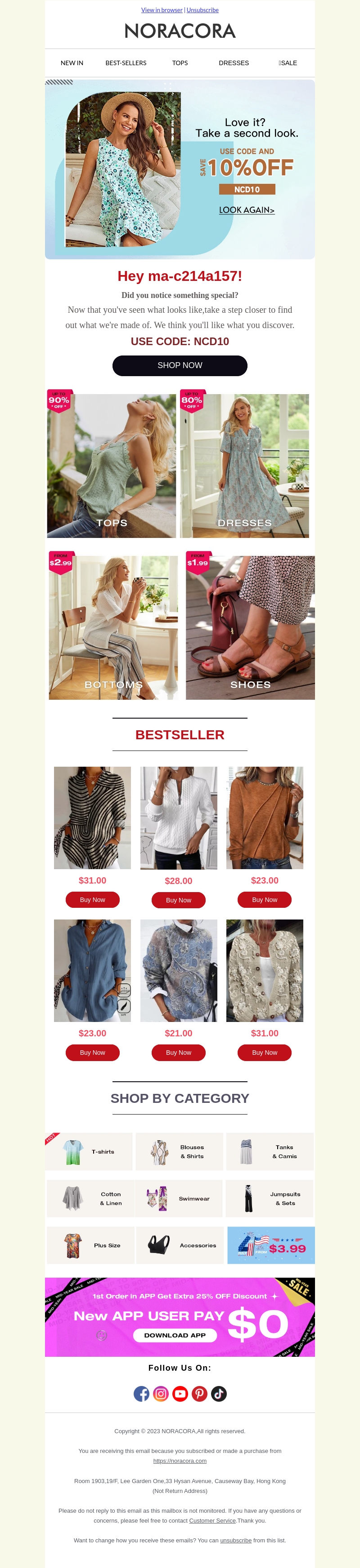 Mis deze kans niet om 10% korting te krijgen op je favoriete items bij Noracora. Ontdek de nieuwste modetrends en profiteer van geweldige aanbiedingen. Gebruik de code NCD10 en shop vandaag nog. Laat je inspireren door onze topcategorieën en vind jouw perfecte outfit. Bekijk nu Noracora's collectie en geniet van de exclusieve korting.
