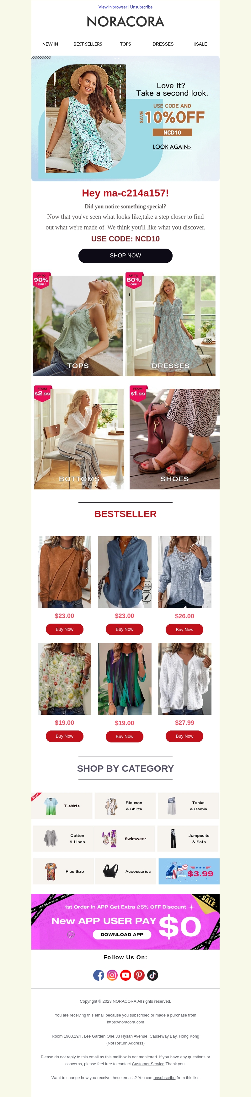 Ontvang nu 10% korting op je hele bestelling bij Noracora! Gebruik de code NCD10 om te besparen op prachtige jurken, tops, broeken, en schoenen. Mis deze kans niet om je garderobe te vernieuwen met de nieuwste modetrends.