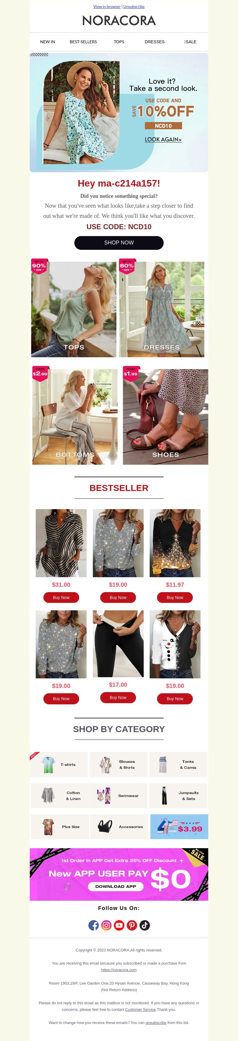 Grijp je kans nu bij Noracora met een exclusieve 10% korting. Bekijk de nieuwste tops, jurken, en meer in onze collectie. Gebruik de code NCD10 bij het afrekenen. Mis deze kans niet en vernieuw je garderobe voordelig. Shop nu bij Noracora en ontdek je nieuwe favoriete kledingstukken. De actie is tijdelijk, dus wees er snel bij!