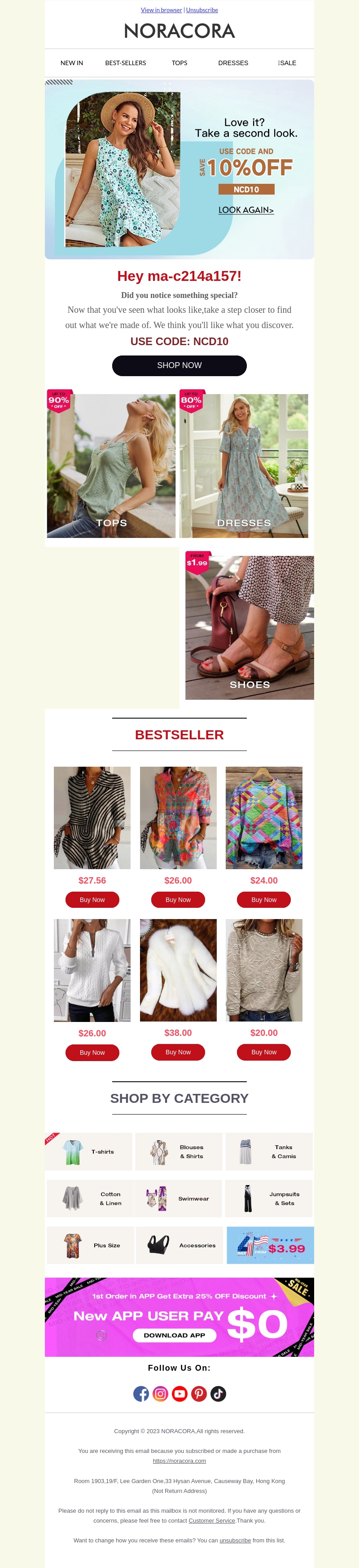 Verken de nieuwste modecollecties bij NORACORA en ontvang 10% korting met code NCD10. Ontdek prachtige jurken, tops en schoenen in de bestsellercollectie. Blijf stijlvol en bespaar vandaag nog! Bezoek nu en shop uw favorieten.