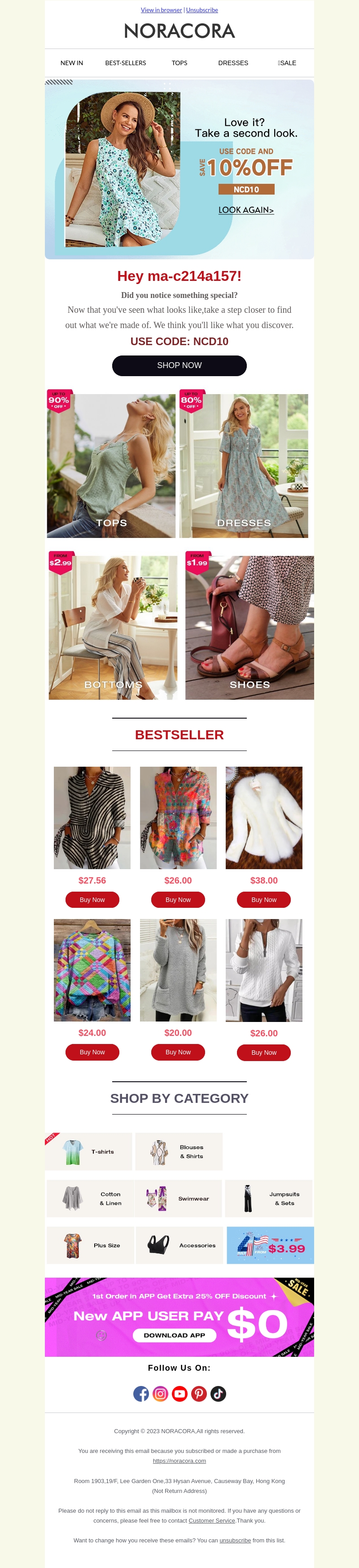 Duik in het laatste modenieuws van Noracora met een exclusieve 10% korting. Of je nu op zoek bent naar trendy tops, elegante jurken, of comfortabele schoenen, er is voor ieder wat wils. Mis deze kans niet om je garderobe te updaten met onze populaire bestsellers. Gebruik de kortingscode en shop vandaag nog!
