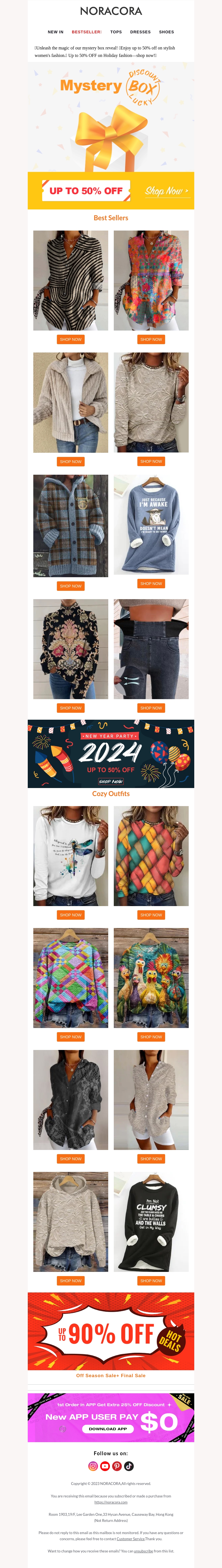 Beleef de opwinding van onze uitzonderlijke jaarafsluitingsverkoop met kortingen tot wel 90%! Van modieuze tops tot gezellige outfits, er is voor ieder wat wils. Mis deze kans niet om uw garderobe op te frissen voor het nieuwe jaar. Verwen uzelf met de beste stijlen en aanbiedingen. Koop nu in onze Noracora-uitverkoop en geniet van verbluffende kortingen op uw favoriete items.