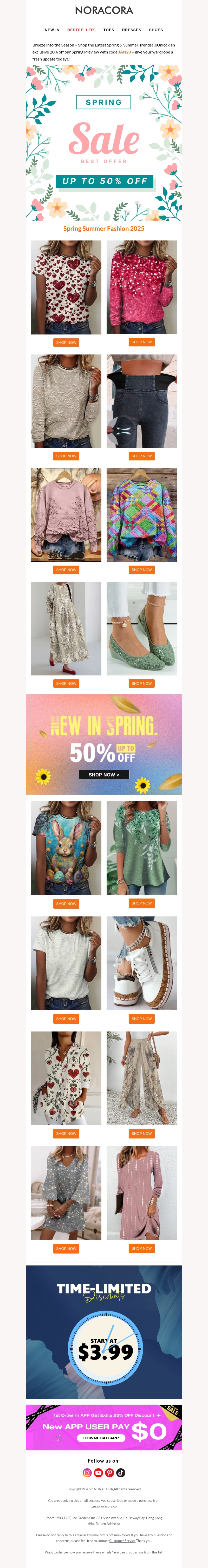 Ontdek de nieuwe lente- en zomercollectie van Noracora met prachtige stijlen. De collectie biedt een mix van casual en elegante kledingstukken. Profiteer van een exclusieve aanbieding met kortingen tot 50%. Zoek je perfecte outfit voor het warme seizoen. Blijf stijlvol, comfortabel en betaalbaar met Noracora. Mis deze verfrissende trends niet!