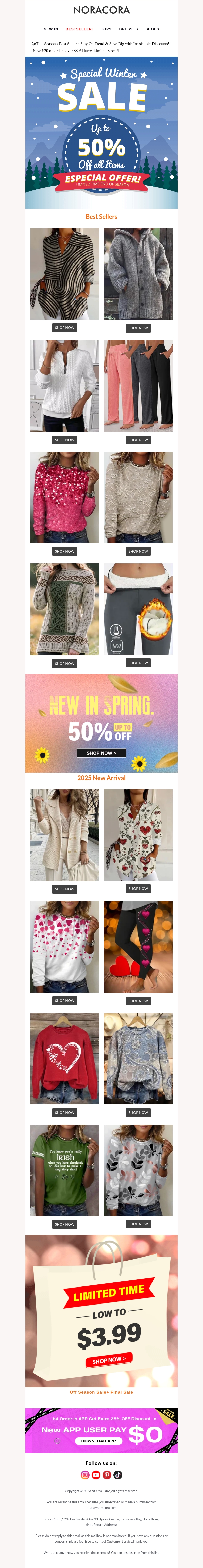 Grijp je kans om te besparen op de nieuwe wintercollectie van Noracora. Geniet van kortingen tot 50% op diverse artikelen. Van stijlvolle jassen tot trendy truien, er is voor ieder wat wils. Bezoek de winkel nu en vernieuw je garderobe voor minder. Mis deze speciale aanbieding niet die alleen voor beperkte tijd beschikbaar is. Bekijk ook de nieuwe lente-collectie met dezelfde geweldige kortingen.