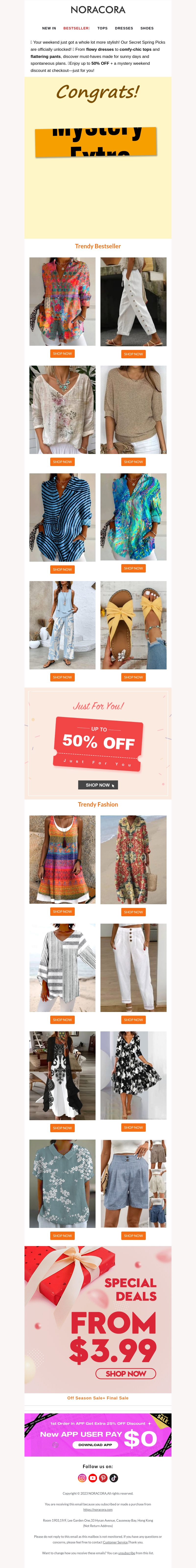 💐Secret Spring Picks Unlocked! 🥳Refresh Your Weekend Wardrobe with Up to 50% OFF!✨