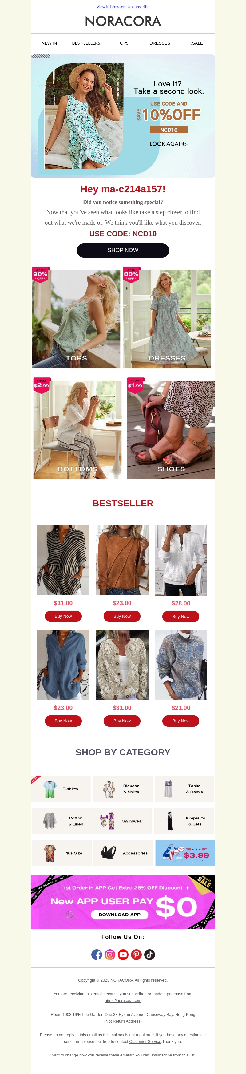 Grijp nu de kans om te besparen op je favoriete mode bij Noracora. Ontvang 10% korting met code NCD10. Verken de bestsellers en vernieuw je garderobe. Van tops tot jurken, alles in de aanbieding! Mis het niet, bekijk de selectie nu.