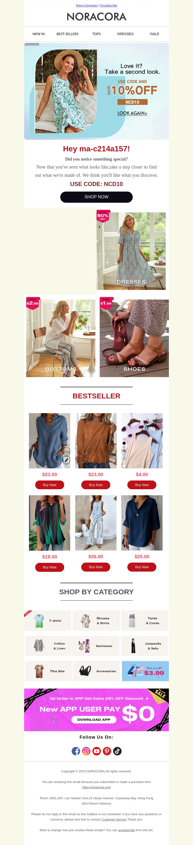Heb je ons bekeken? Profiteer nu van 10% korting op je volgende aankoop bij Noracora. Gebruik de code NCD10 om te besparen op trendy jurken, schoenen en meer. Bekijk onze bestsellers en ontdek geweldige deals.