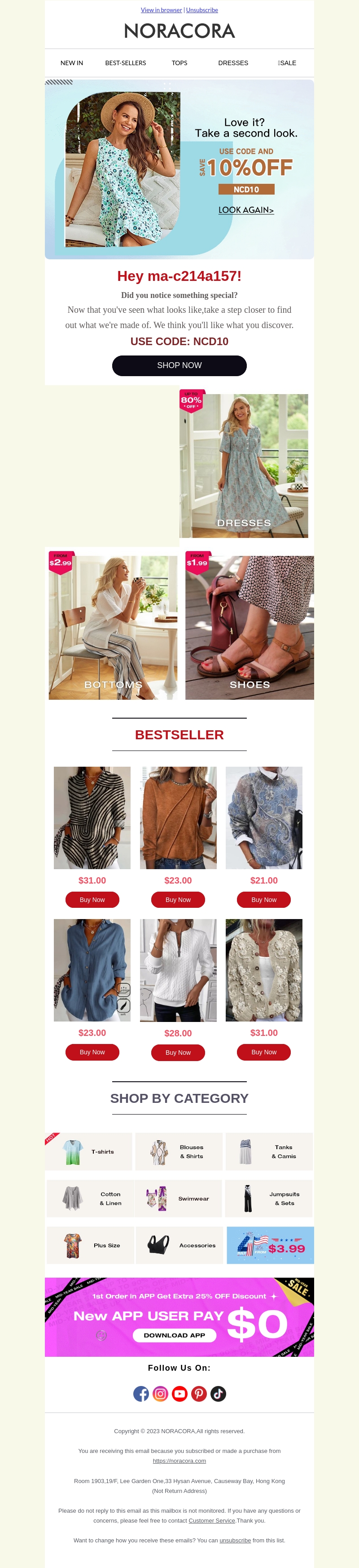 Bekijk de nieuwste aanbiedingen van Noracora en profiteer van geweldige kortingen op mode-artikelen. Met de code 'NCD10' krijg je 10% korting op je volgende aankoop. Ontdek de bestsellers en vernieuw je garderobe tegen een betaalbare prijs. Van jurken tot accessoires, er is iets voor iedereen. Mis deze kans niet om je stijl te upgraden!