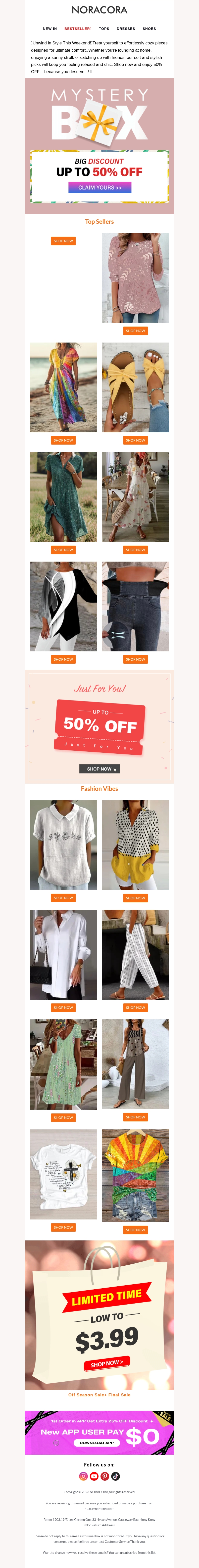 Pak een geweldige korting van 50% op comfortabele stijlen voor een relaxte dag. Deze nieuwsbrief biedt een overzicht van modieuze en betaalbare kleding die perfect is voor een weekendje weg. Geniet van de stijlvolle topverkopers die je comfort en stijl brengen. Ontdek ook verrassingskortingen die jouw shoppingervaring speciaal maken. Mis deze exclusieve deals niet. Shop nu en verfris je garderobe!
