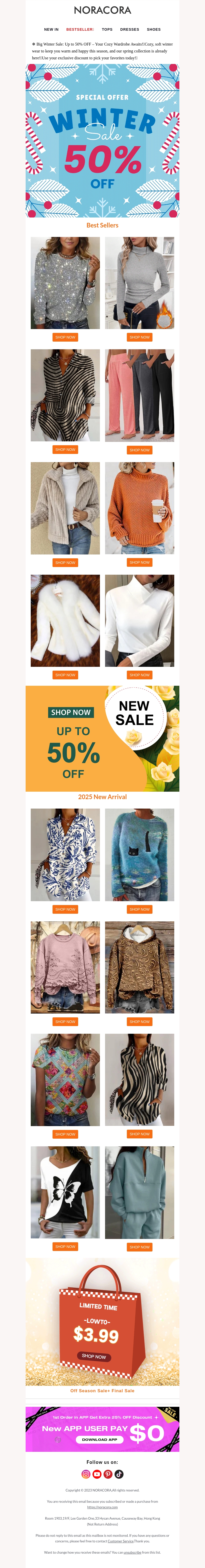 Duik in de winter met onze bestsellers en geniet van kortingen tot 50%. Van comfortabele truien tot trendy jassen, er is voor ieder wat wils. Mis deze geweldige kans niet om je garderobe bij te werken met stijlvolle, voordelige kleding. Bekijk ook onze nieuwste aankomsten voor het seizoen 2023. Winkel nu en profiteer van schitterende deals! Bezoek ons online voor de volledige collectie.