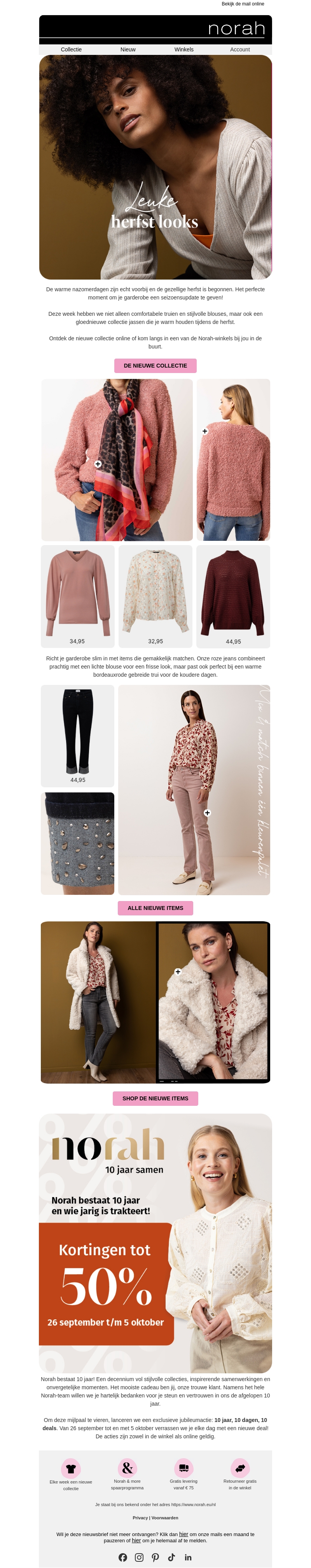 De warme nazomerdagen zijn echt voorbij en de gezellige herfst is begonnen. Dit is het perfecte moment om je garderobe een seizoensupdate te geven. Ontdek comfortabele truien, stijlvolle blouses en meer met kortingen tot 50%.