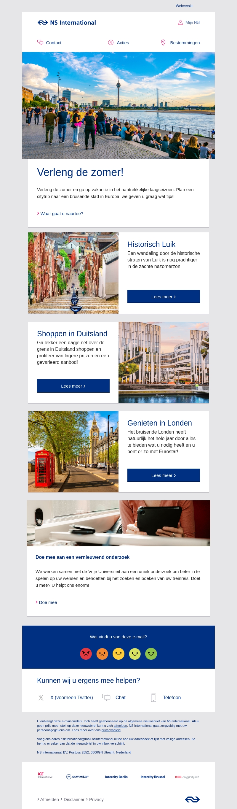 Verleng de zomer en ga op vakantie in het aantrekkelijke laagseizoen. Plan een citytrip naar een bruisende stad in Europa, zoals Luik, Duitsland of Londen. Wij geven u graag wat tips!