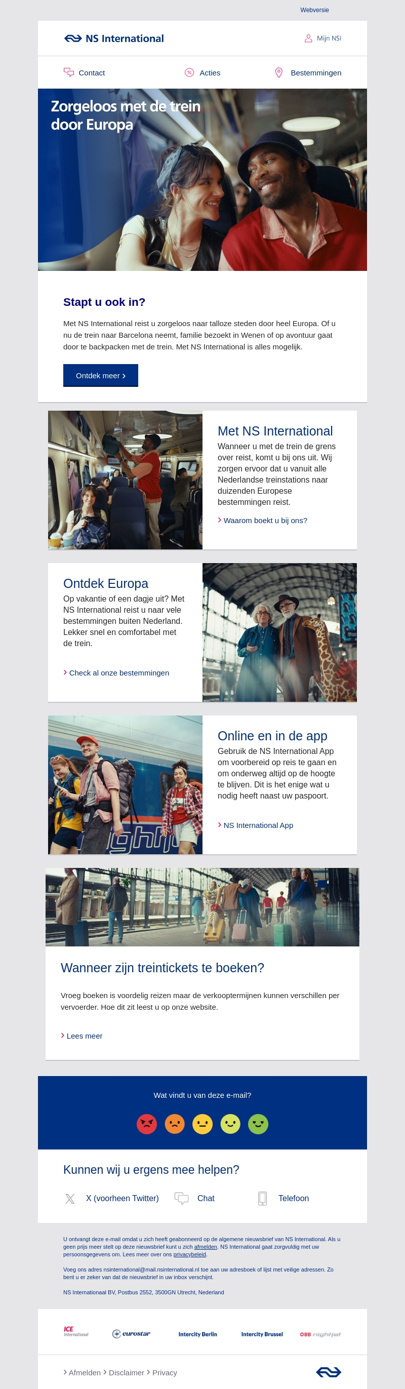 Reis zorgeloos door Europa met NS International. Ontdek steden zoals Barcelona, Wenen, en vele andere met comfortabele en snelle treinreizen. Bereid je reis voor met de NS International app en blijf altijd op de hoogte. Boek vroeg om voordelig te reizen!