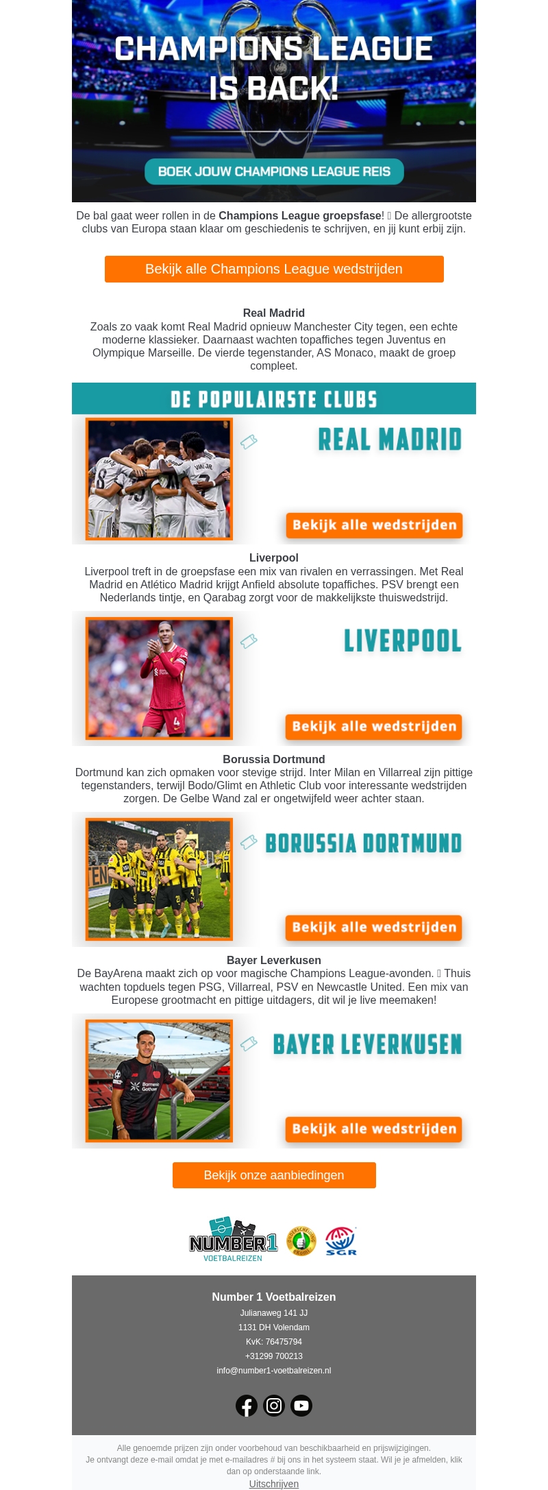 Bezoek volledig verzorgd de kwartfinales van Champions League vanaf €539,- p.p.!