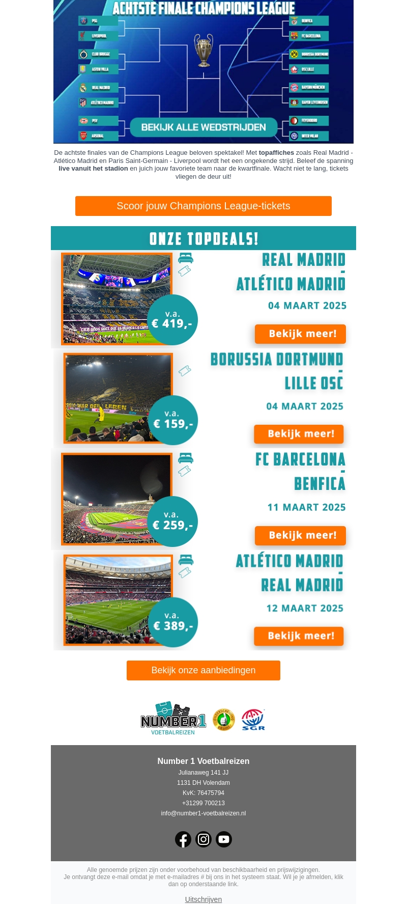 De achtste finales van de Champions League beloven een waar spektakel te worden. Mis geen moment en juich je favoriete team naar de overwinning. Reserveer nu je tickets voor topaffiches zoals Real Madrid - Atlético Madrid. Bekijk ons aanbod voor meer details en exclusieve deals.