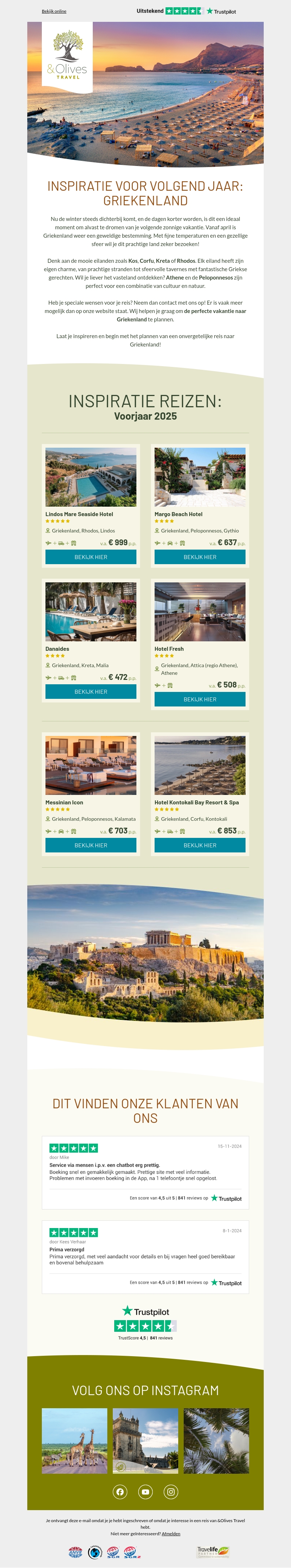 Nu de winter nadert, is het tijd om te dromen over de zomer. Griekenland is de perfecte bestemming voor 2025. Verken prachtige steden als Kos en Rhodos en ontspan op zonnige stranden. Laat je inspireren door onze klantbeoordelingen en boek je volgende avontuur.