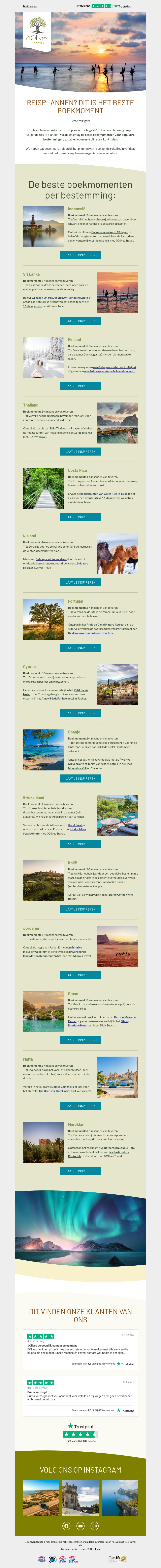 Deze nieuwsbrief toont de beste momenten om je reis te boeken naar diverse bestemmingen. Of je nu naar Thailand, IJsland, of Spanje wilt, wij hebben het ideale boekmoment voor je op een rij gezet. Ontsnap aan de drukte en geniet van de mooiste plekken tegen de beste prijzen. Lees verder voor meer informatie over hoe je jouw reisdromen waar kunt maken. Mis de kans niet om te profiteren van geweldige aanbiedingen! Begin vandaag nog met plannen.