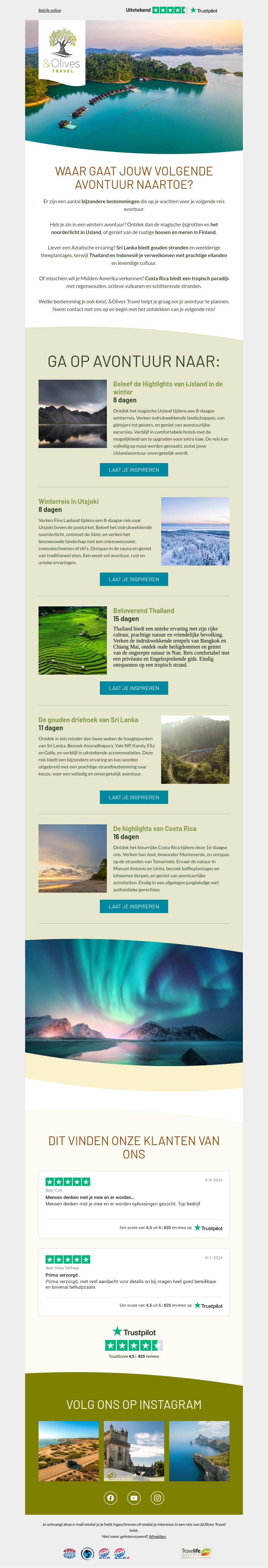 Waar gaat jouw volgende avontuur naartoe? Ontdek unieke reisbestemmingen en laat je inspireren door adembenemende landschappen van IJsland, Finland, Thailand, Costa Rica en Sri Lanka. Schrijf je in voor jouw droomreis en beleef onvergetelijke momenten met 8Olives Travel!