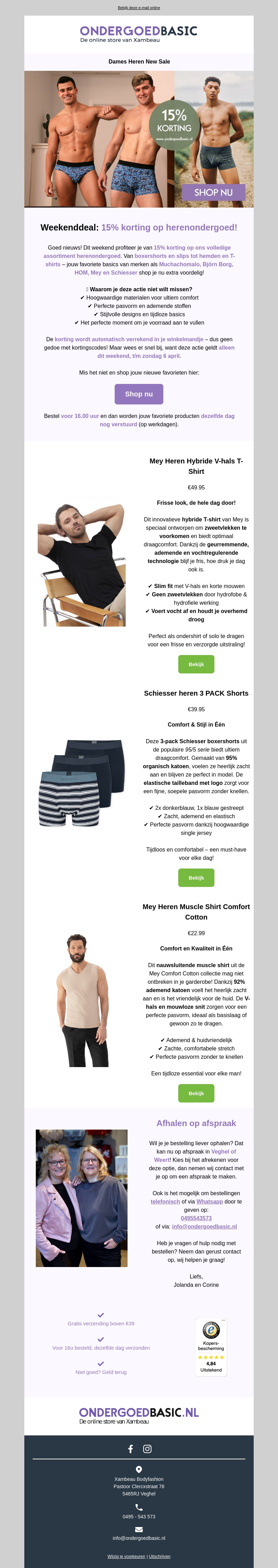 DIT WEEKEND 15% KORTING OP HERENONDERGOED!