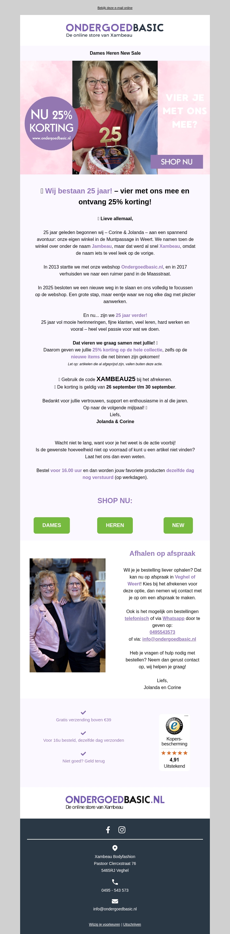 ๐ Laatste kans: vier 25 jaar Ondergoedbasic met 25% korting!