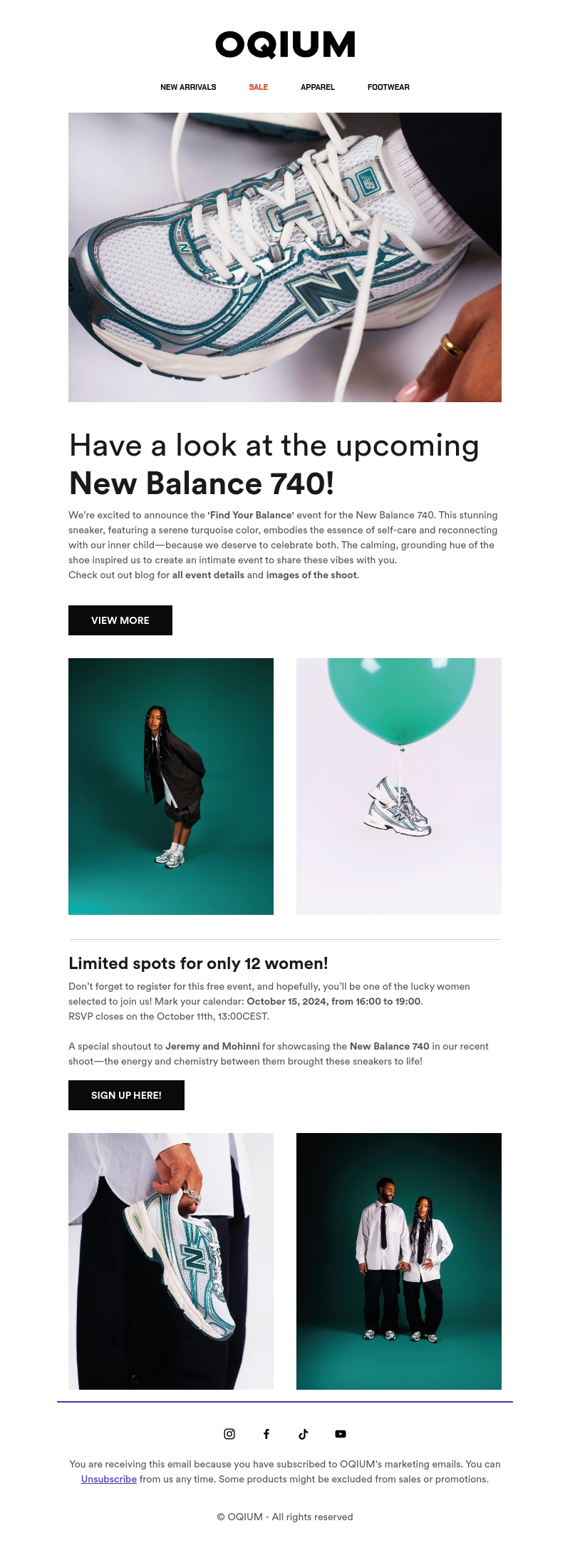 Bezoek ons 'Find Your Balance' evenement voor de lancering van de New Balance 740. Deze sneaker, met zijn serene turquoise kleur, belichaamt zelfzorg en herverbinding met je innerlijke zelf. Ontmoet de modellen Jeremy en Mohinni tijdens dit speciale evenement op 15 oktober 2024.
