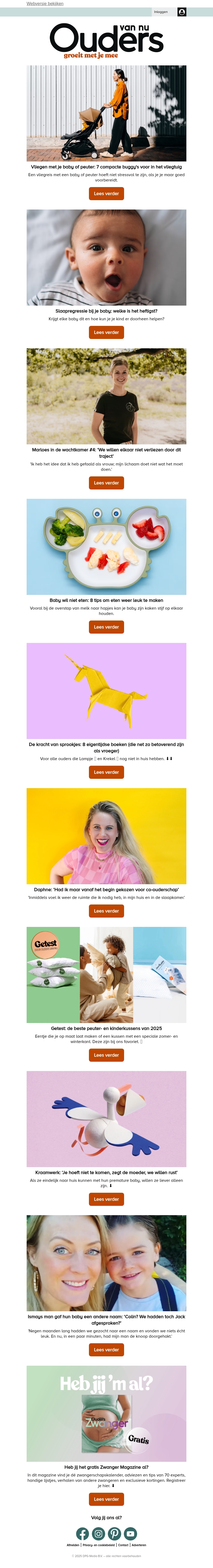 Deze nieuwsbrief van Ouders van Nu brengt je de laatste verhalen en inzichten over ouderschap. Van verrassende keuzes bij het kiezen van babyvoeding, tot grappige verhalen over baby- en kindernamen. Ook lees je hoe ouders omgaan met onverwachte situaties en hoe je je kind het beste kunt voorbereiden op de eerste schooldag.