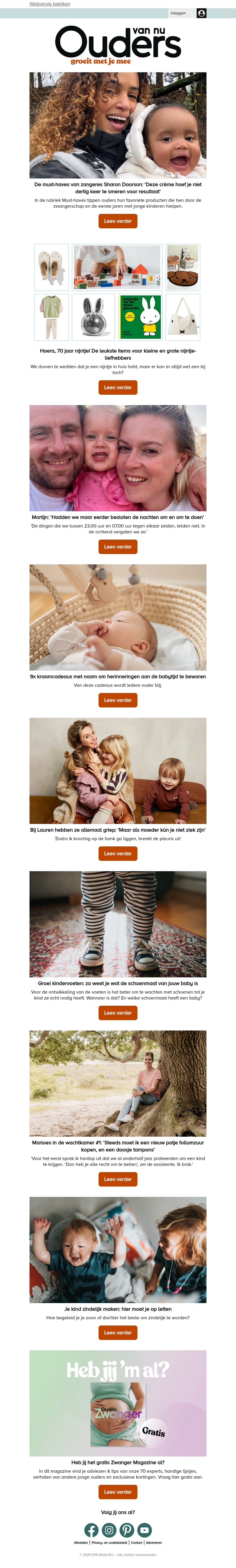 Duik in de wereld van Ouders van Nu en ontdek inspirerende verhalen en handige tips voor ouders. Van het perfecte moment om herinneringen vast te leggen tot praktische adviezen voor de allerkleinsten. Ook vind je er geweldige aanbiedingen en producten die het leven van ouders een stukje makkelijker maken. Verlies jezelf in de warme en persoonlijke verhalen van andere ouders. Mis deze kans niet om geïnspireerd te raken!