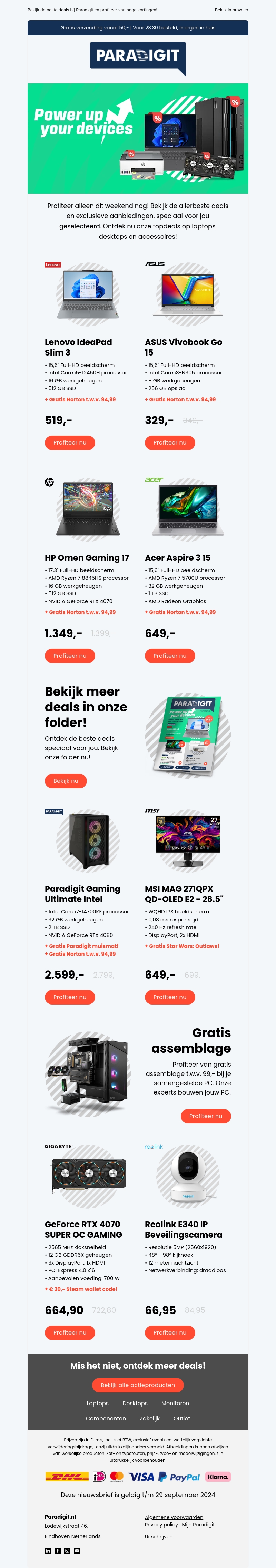 Profiteer alleen dit weekend nog! Geniet van geweldige deals op laptops, desktops en accessoires. Krijg gratis verzending bij aankopen boven €50 en ontdek exclusieve kortingen op producten zoals Lenovo IdeaPad, ASUS Vivobook, HP Omen Gaming en meer. Mis het niet!