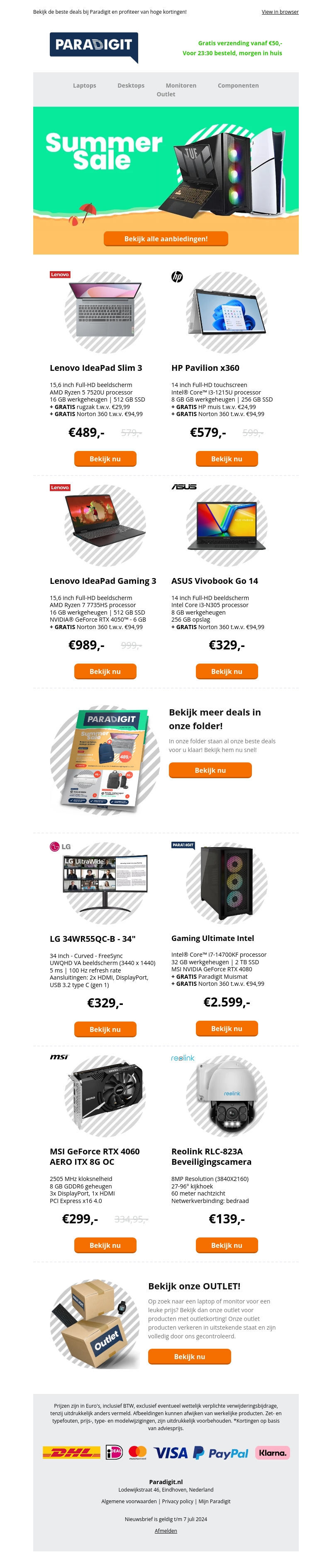 Mis deze kans niet om te profiteren van hoge kortingen tijdens de Paradigit Summer Sale! Bekijk de nieuwste aanbiedingen op laptops, desktops, monitoren en componenten. Gratis verzending vanaf €50 en vandaag besteld, morgen in huis. Dit is de perfecte tijd om te upgraden!