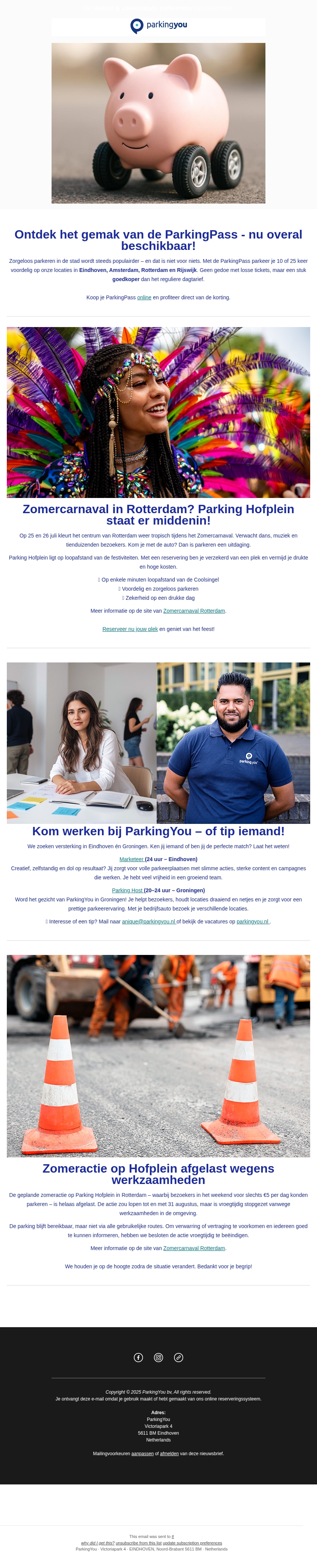 ParkingPass nu overal beschikbaar | Zomercarnaval rond Hofplein - Nieuwsbrief juni 2025 - ParkingYou