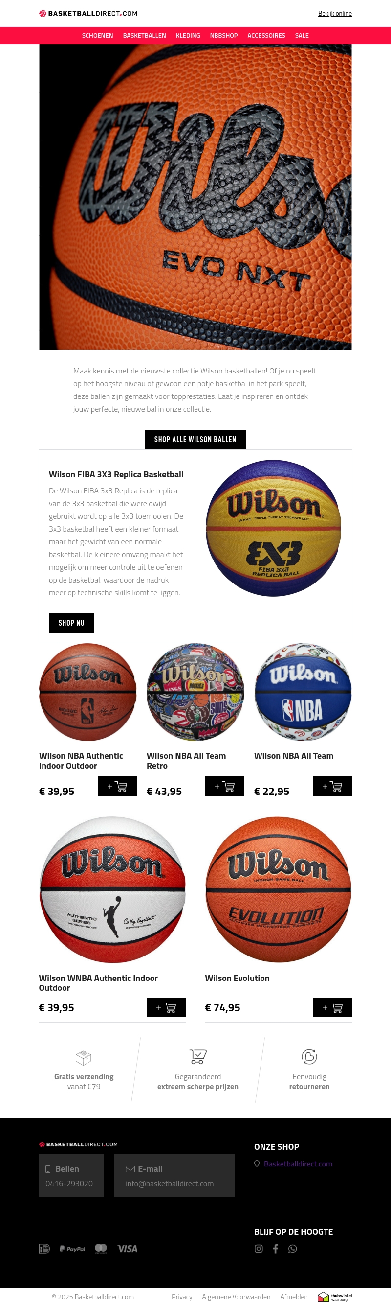 Duik in de nieuwe Wilson basketbalcollectie en ervaar de topkwaliteit waar Wilson om bekend staat. Geschikt voor ieder speelveld, of je nu een serieuze speler bent of gewoon voor de lol speelt. Onze selectie biedt voor elk wat wils, met hoogwaardige materialen en innovatieve ontwerpen.