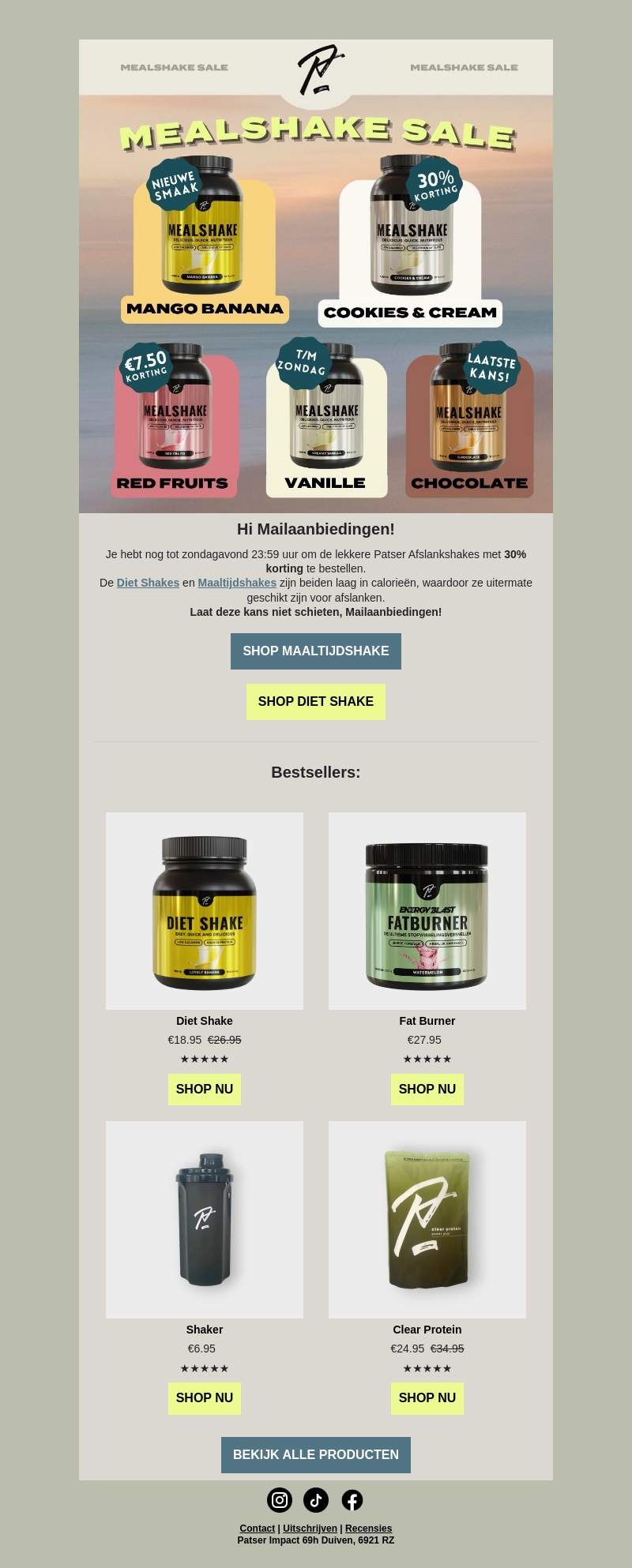 Mis deze unieke kans niet! Tot zondagavond 23:59 uur krijg je 30% korting op onze heerlijke maaltijdshakes en dieetshakes. Perfect om calorieën te beperken en effectief af te slanken.