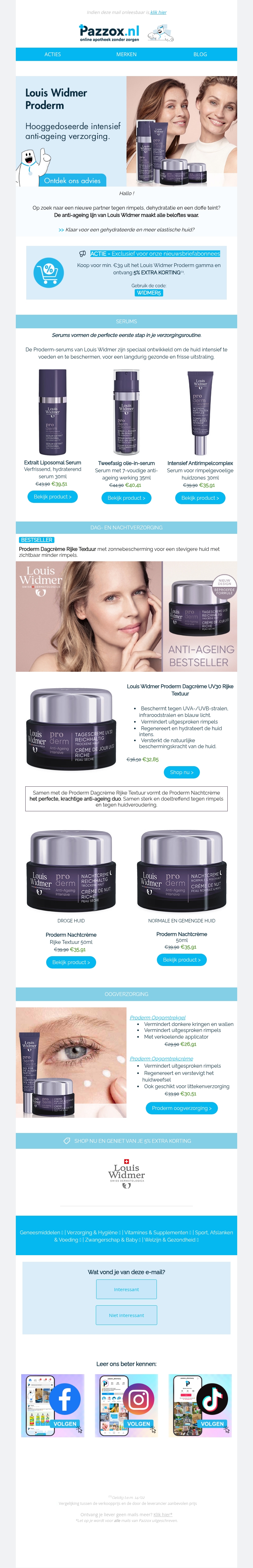 Ontdek het vernieuwde Proderm gamma van Louis Widmer voor een stralende huid. Deze intensieve anti-ageing verzorging is ontworpen om de huid te hydrateren en te verjongen. Met geavanceerde formules biedt het gamma oplossingen voor verschillende huidtypen. Profiteer nu van advies en exclusieve kortingen.
