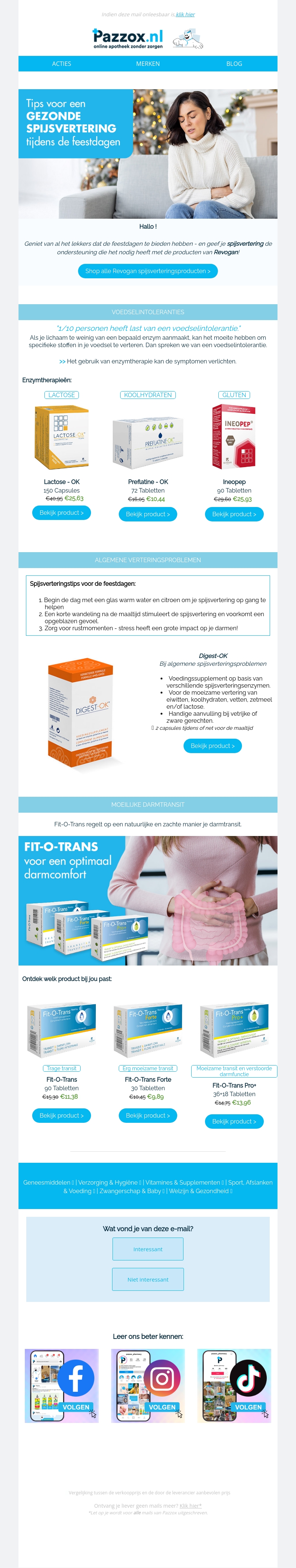 Geniet zonder spijsverteringsproblemen van heerlijke feestdagen met onze tips en producten. Ontdek Revogan's assortiment voor een betrouwbare ondersteuning bij voedselintoleranties en algemene spijsverteringsproblemen. Begin met een glas warm water en vermijd stress voor een gezonde darmtransit. Bekijk nu onze aanbevolen producten!