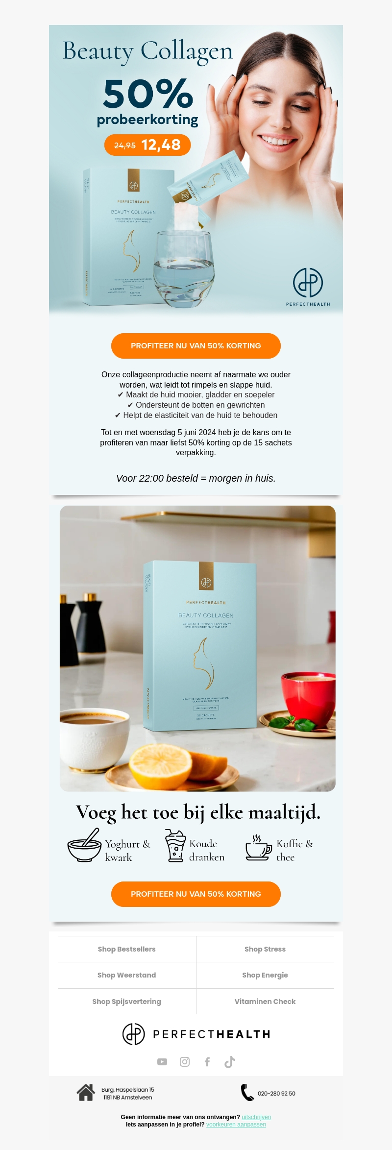 Onze collageenproductie neemt af naarmate we ouder worden, wat leidt tot rimpels en een slappe huid. Beauty Collagen maakt de huid mooier, gladder en soepeler. Profiteer nu van 50% korting op deze geweldige aanbieding!