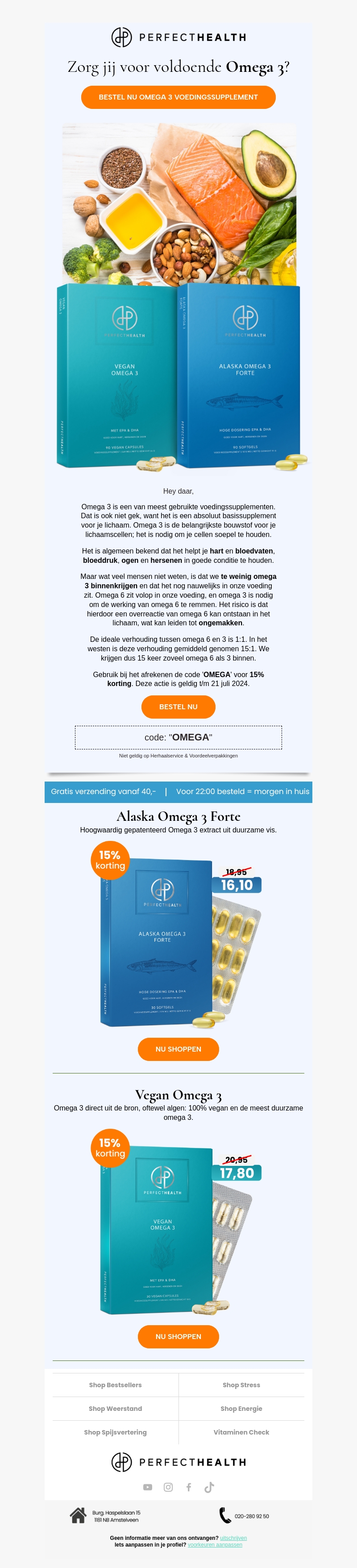 Omega 3 speelt een cruciale rol in je gezondheid. Leer waarom en hoe je je inname kunt verhogen. Profiteer van 15% korting op je aankoop met de code OMEGA, geldig tot 21 juli 2024.