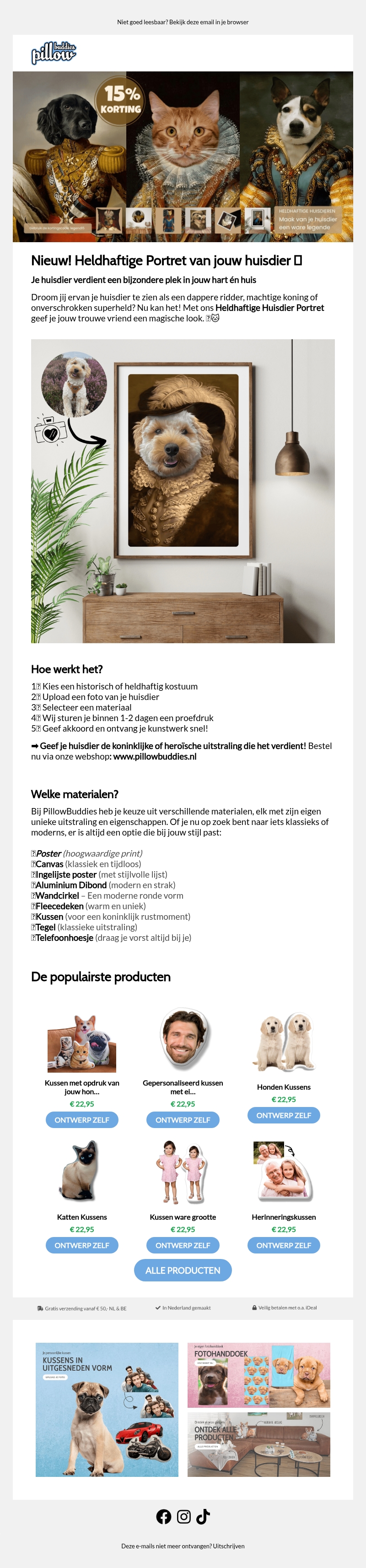 Geef je huisdier een koninklijke of heroΓ―sche uitstraling met onze unieke portretten. Kies uit diverse historische kostuums en indrukwekkende materialen. Binnen 1-2 dagen een proefdruk en snelle levering. Bekijk onze populaire producten en maak je huisdier een echte legende.