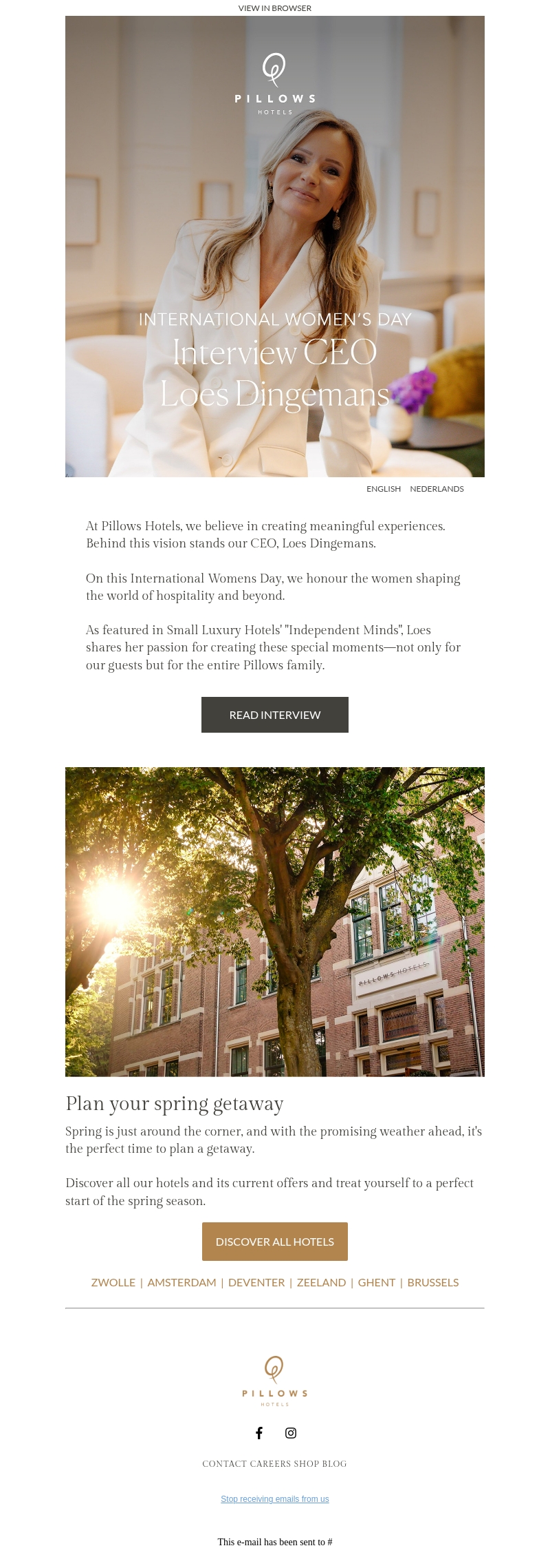 Pillows Hotels viert Internationale Vrouwendag met een exclusief interview met CEO Loes Dingemans. Ze deelt haar passie voor het creรซren van betekenisvolle ervaringen in de hotellerie. Lees meer over haar visie en de plannen voor het komende seizoen.