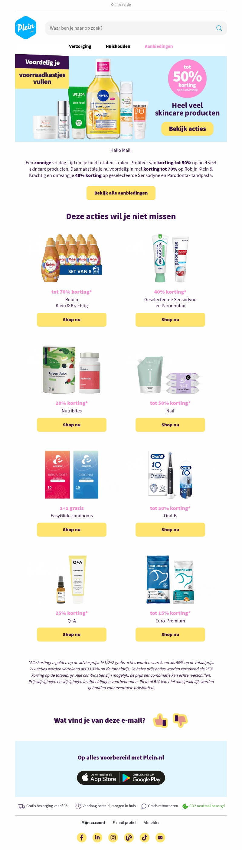 Geniet van lente-aanbiedingen met kortingen tot 50% op huidverzorgingsproducten. Vul je voorraden voordelig aan met Robijn en bespaar tot wel 70%. Scoor ook geweldige deals op tandpasta en meer. Shop nu en laat de lente stralen!