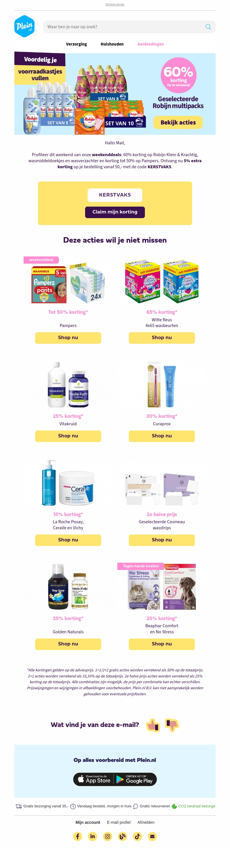 Geniet van grote besparingen tijdens onze weekenddeals! Ontvang tot 60% korting op geselecteerde Robijn multipacks. Verder zijn er kortingen tot 50% op Pampers en andere aantrekkelijke aanbiedingen. Mis deze kans niet om uw favoriete producten voor een fractie van de prijs te krijgen.