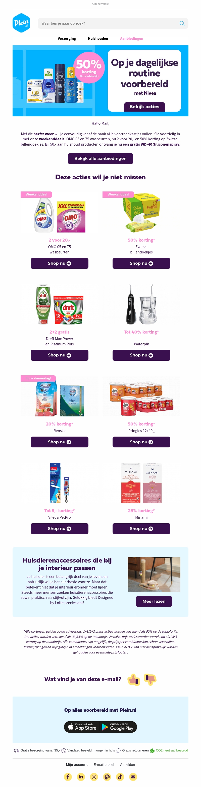Bespaar groot met onze weekenddeals, waaronder 2 OMO wasbeurten voor slechts 20,-. Ontdek ook 50% korting op Zwitsal billendoekjes en exclusieve deals op Dreft en Waterpik producten. Mis de kans niet om voordelig in te slaan voor je huishoudelijke behoeften.