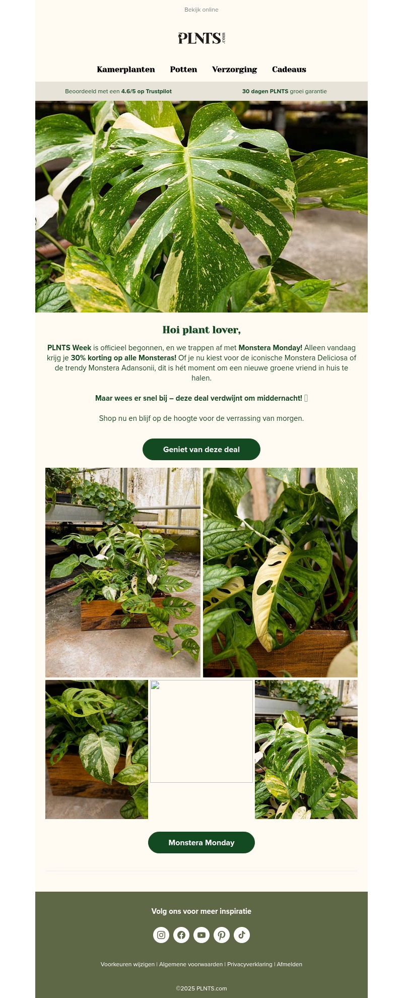 PLNTS Week begint nu β vandaag 30% korting op alle Monsteras! π±