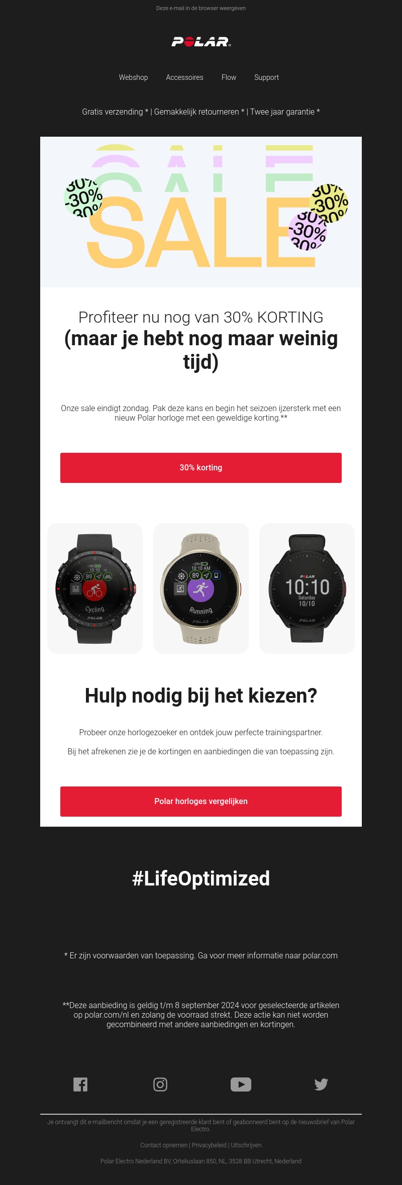 Grijp nu je kans bij Polar en profiteer van 30% korting! Onze sale eindigt zondag, dus wees snel. Ontdek onze horlogezoeker om de perfecte trainingspartner te vinden. Mis deze geweldige deal niet!